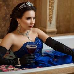 Wearing a nice black lowcut dress, and my hair long and down, we start with some nice lumpy rice pudding. Then some delicious custard all over my head and face. It was so cold! Next up some blue pudding mix. Tasted like banana! My dress is filling up now! Then some more thick custard over the head. Then a huge bucket of yoghurt next! I'm completely covered now. Then adding some cherry pudding pie mix for some colour contrast. It's all tasting so good