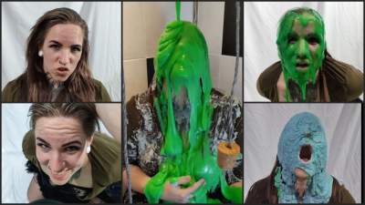 "Great value video! Such a pretty model. This video features Sooty sitting through multiple gungings as she tests out her new tank. Generally the gunge is thick with some thicker than others, possibly because it's getting re-used between takes? What really hits you about this video is how pretty Sooty is and she seems to really enjoy getting gunged particularly straight onto the face--so she spends a lot of the video looking upward--my only criticism would be its not the most interesting of viewing angles. The video is shot against silence, you can hear every plop and splatter, but it's pretty much dialogue free apart from her saying "ready... " at one point and I would have loved to hear a little smalltalk. This is a really great value video though, you get a lot for your money. ![]() | |